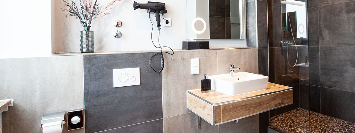 - Bathroom with shower, hairdryer and make-up mirror