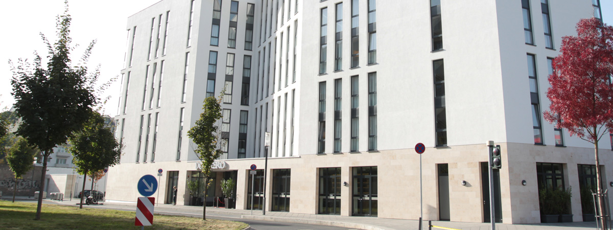 Flying visit to the international finance and trade fair city of Frankfurt. Located in the central Europaviertel city district and only a few steps away from the exhibition center, the DORMERO Hotel Frankfurt Messe with its 148 rooms is the perfect operation base for business travelers. Abreast of the times in an environment of complete relaxation. State-of-the-art communication technology allows trouble-free work all over the premises. Straight-lined surfaces, changing illuminations, quiet and comfortable sitting areas, red highlights – a design as sexy as it gets.