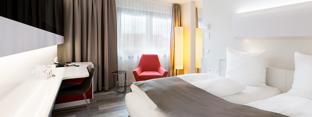 Days of travel are often long and eventful. When traveling, compromises when it comes to the things that surround you are not an option. Our DORMERO Deluxe Rooms of 21 – 35 sqm will meet this need and due to their straightforward design and plain elegance provide the free personal space you require when traveling. In addition to an array of technical innovations, the DORMERO sleeping system will bring to perfection your right of a pleasant stay at the DORMERO Hotel Hannover.