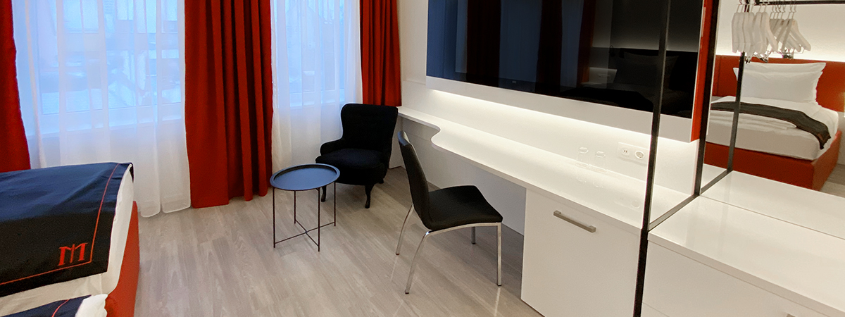 The DORMERO Hotel Hersbruck has 79 rooms with different categories ready for you. A perfect combination of design, individuality and minimalist style. For all those who need freedom to live their stay in Hersbruck even behind closed doors. Some may feel it is a break in style, we think it is mystical and appealing.