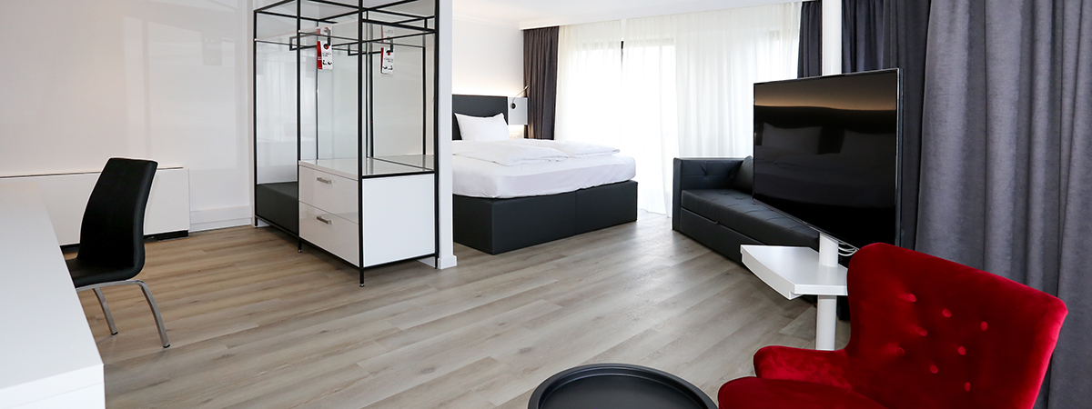 DORMERO sleeping system, cosmetics (at the reception), minibar on the day of arrival, individual lighting system, 55''flatscreen TV, wellness, pets allowed without service charge and late check out 14:00h Sundays + holidays