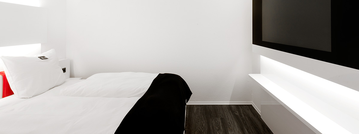 150 hotel rooms, divided into 148 DORMERO rooms and two DORMERO suites, most of which have a balcony. Warm red, stylish black and glossy white meet cool design combined with state-of-the-art technology. The bathrooms are premium, our minibars are free. The location: almost in the middle, meaning it is both central but still quite enough for business travellers and private guests.