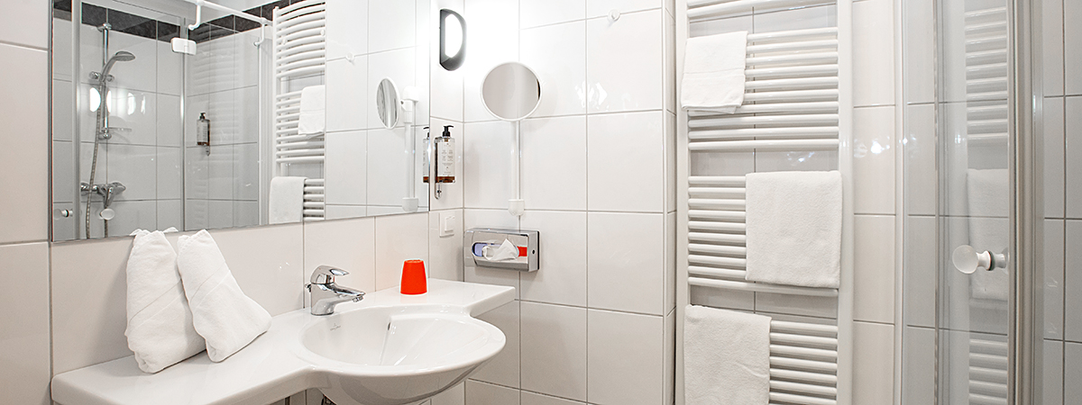 - Bathroom with shower, hairdryer and make-up mirror