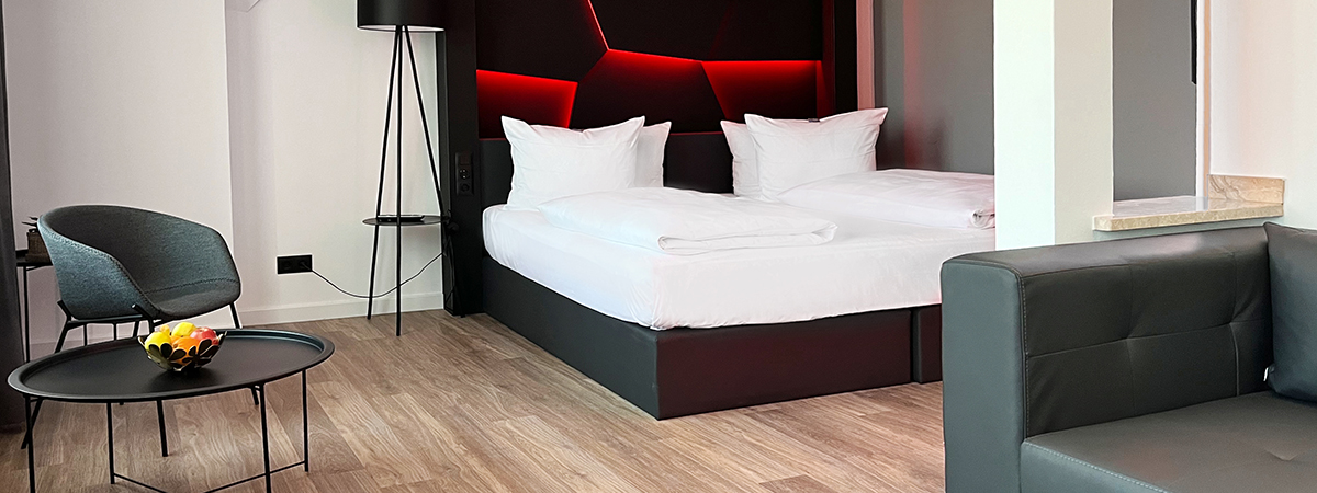 The DORMERO Hotel Xanten has 25 rooms with different categories ready for you. A perfect combination of design, individuality and minimalist style. For all those who need freedom to live their stay in Xanten even behind closed doors. Some may feel it is a break in style, we think it is mystical and appealing.