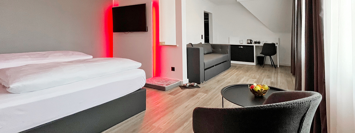 DORMERO sleeping system, cosmetics (at the reception), minibar on the day of arrival, individual lighting system, 55''flatscreen TV, pets allowed without service charge and late check out 14:00h Sundays + holidays
