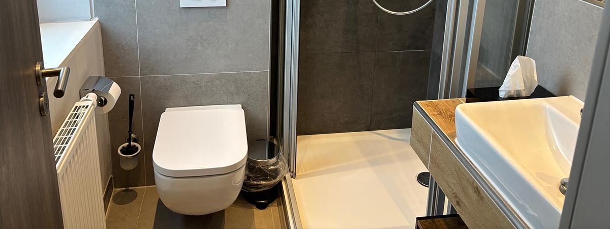 - Bad mit Dusche, Haartrockner und Kosmetikspiegel