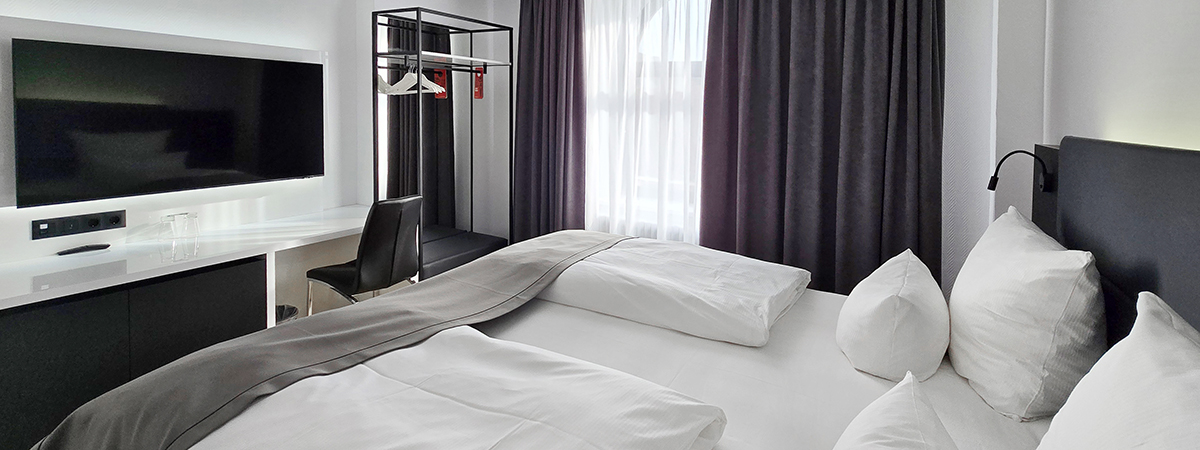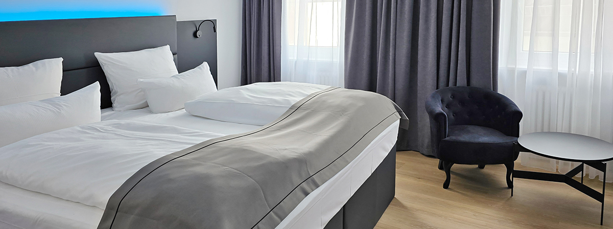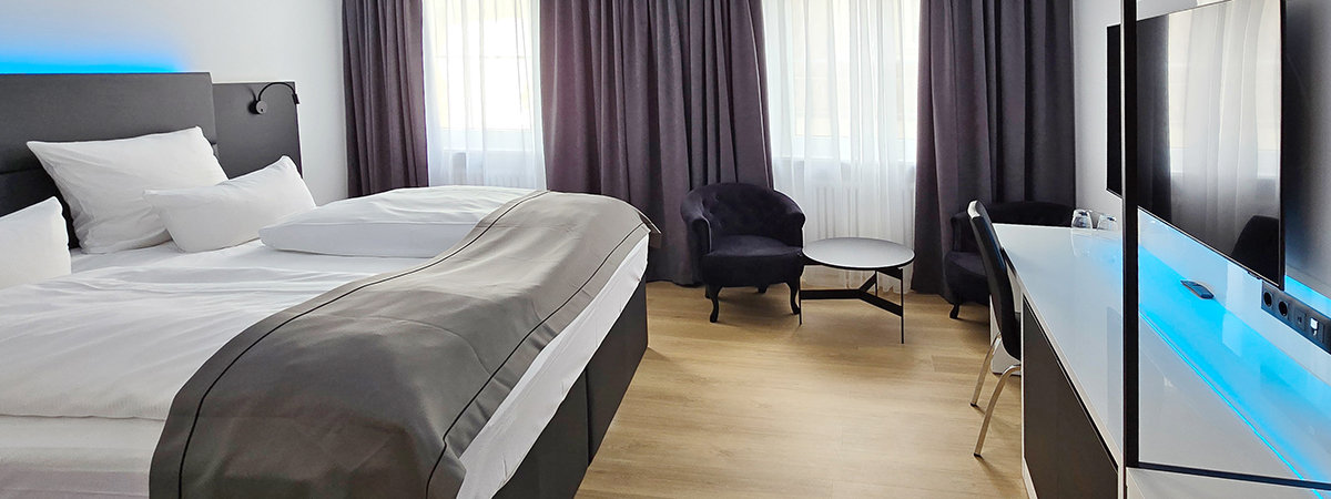 Die Zimmer dieser Kategorie bieten ein stilvolles Ambiente. Genießen Sie den Komfort und die geräumigen Zimmer von ca. 25 m² in der Europastadt Coburg.