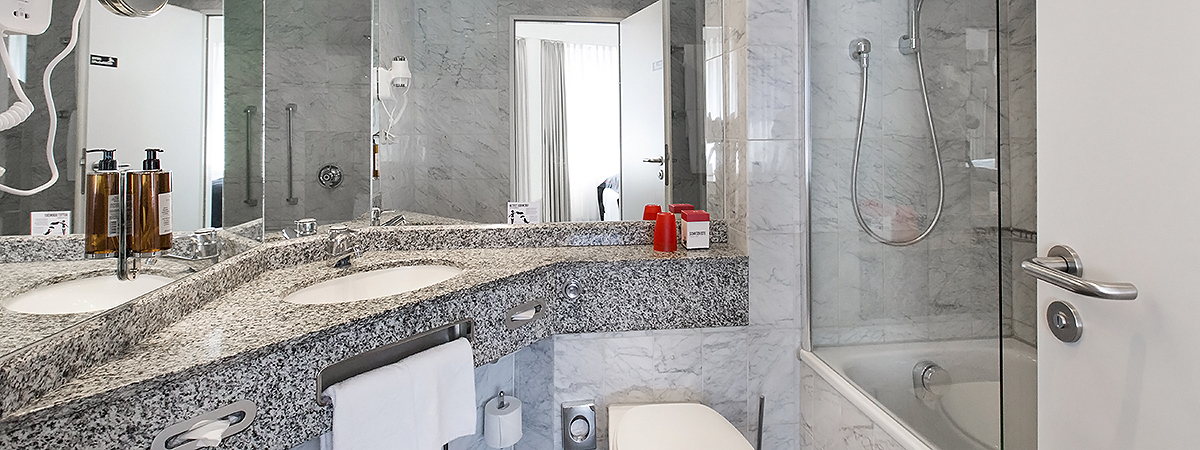 - Bad mit Badewanne und Haartrockner