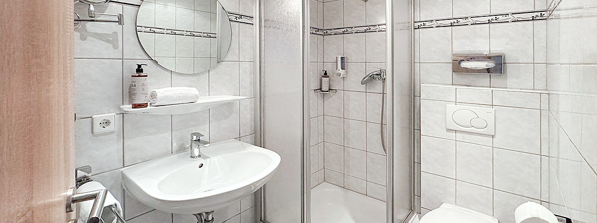 - Bad mit Dusche, Haartrockner und Kosmetikspiegel