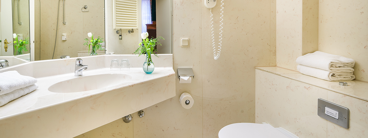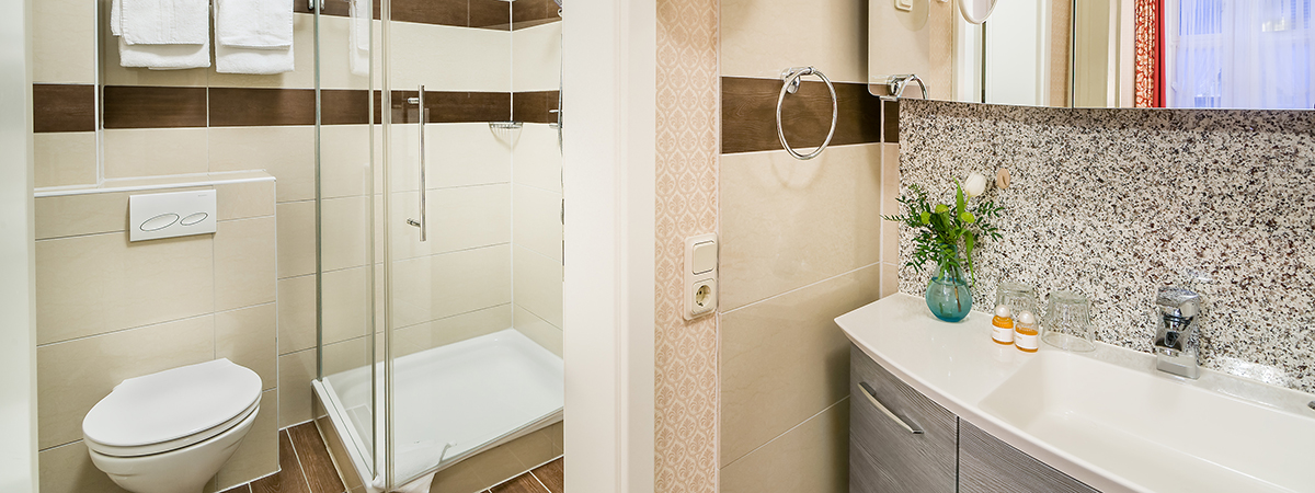 Bad mit Wanne/Dusche, Haartrockner und Kosmetikspiegel