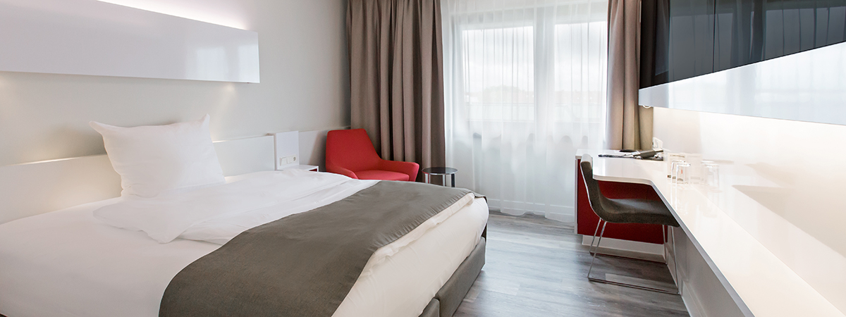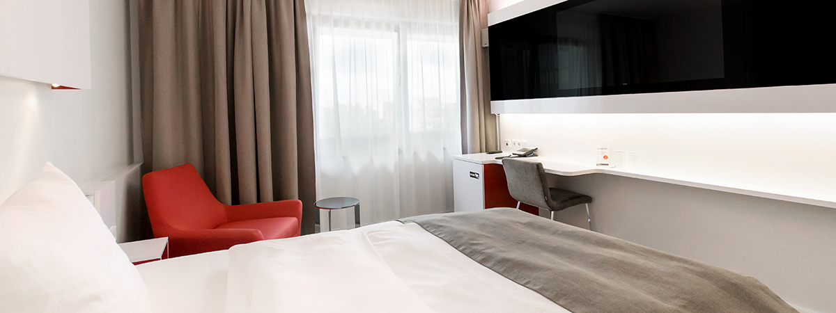 DORMERO Schlafsystem, WLAN, Kosmetikartikel, Minibar am Anreisetag, individuelles Lichtsystem, 55´´Flatscreen TV, Fitness, Wellness, Tiere erlaubt ohne Servicegebühr und Late Check Out 14:00h sonntags + feiertags