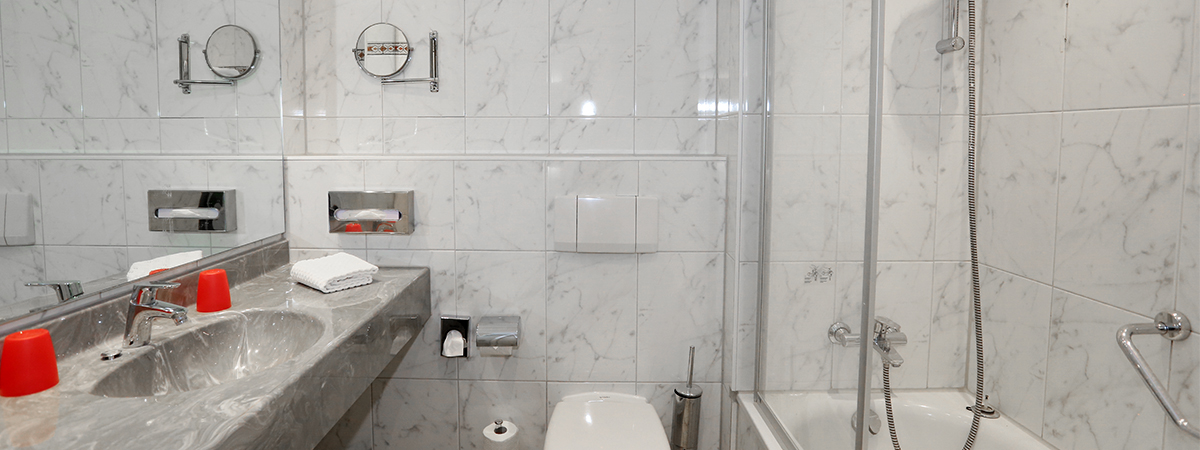 - Bad mit Dusche, Haartrockner und Kosmetikspiegel