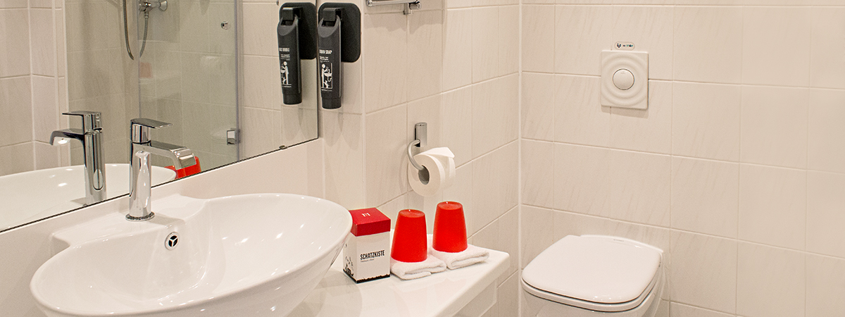 - Bad mit Dusche, Haartrockner und Kosmetikspiegel