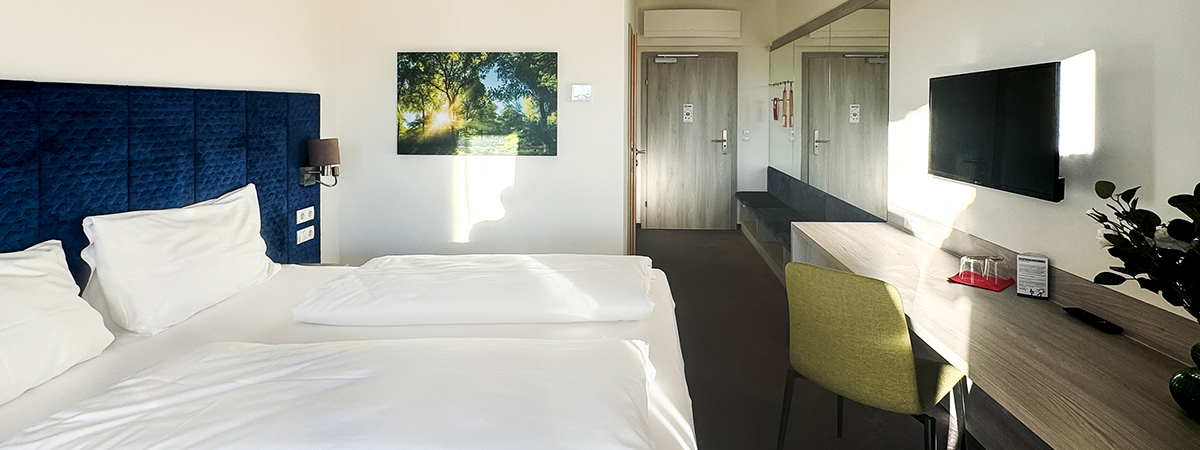 DORMERO Schlafsystem, WLAN, Minibar am Anreisetag, 55´´Flatscreen TV, Tiere erlaubt ohne Servicegebühr und Late Check Out 14:00h sonntags + feiertags