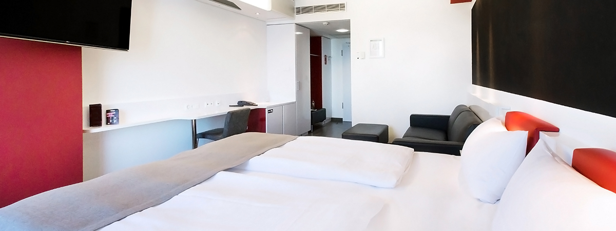 30 m² ist die perfekte Größe, wenn der Aufenthalt im DORMERO Hotel Stuttgart etwas länger dauern darf. Highlight des Zimmers ist das faszinierende 55'' TV Bildschirm. Da möchte man am liebsten wohnen bleiben.