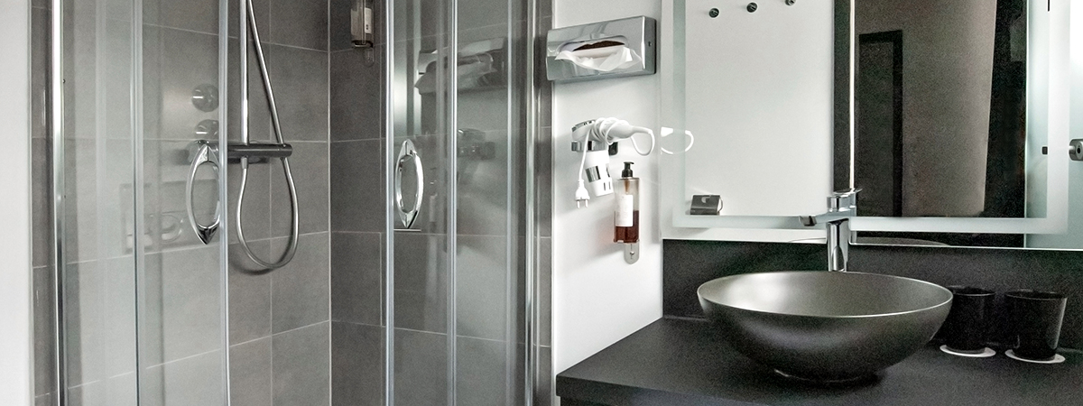- Bad mit Dusche, Haartrockner und Kosmetikspiegel